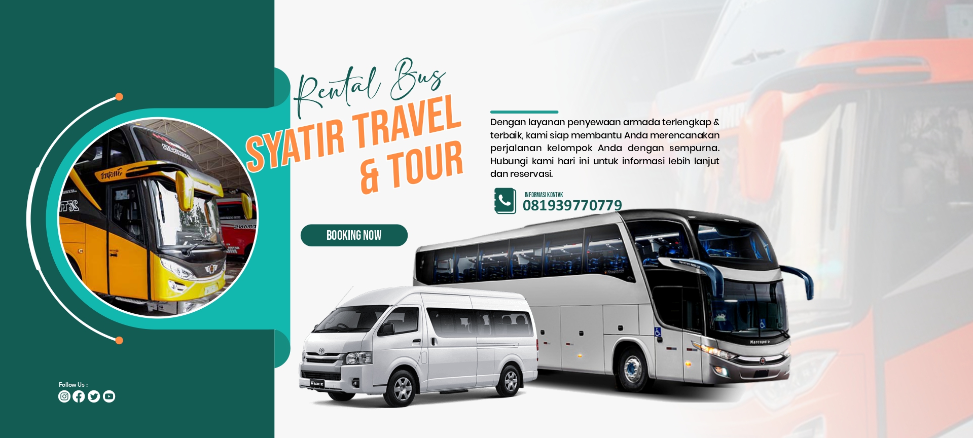 Syatir Tour & Travel menyediakan layanan rental mobil dan bus pariwisata dengan pilihan terlengkap dan terbaik di area Bogor. Mulai dari mobil Hiace yang fleksibel sampai big bus dengan kabin yang luas, kami menawarkan solusi transportasi sesuai kebutuhan Anda. Kami juga selalu merawat armada dan mengupdate fasilitas menjadi lebih modern. Sehingga, armada kami dapat memberikan pengalaman yang berkesan dan tak tertandingi untuk setiap perjalanan Anda.